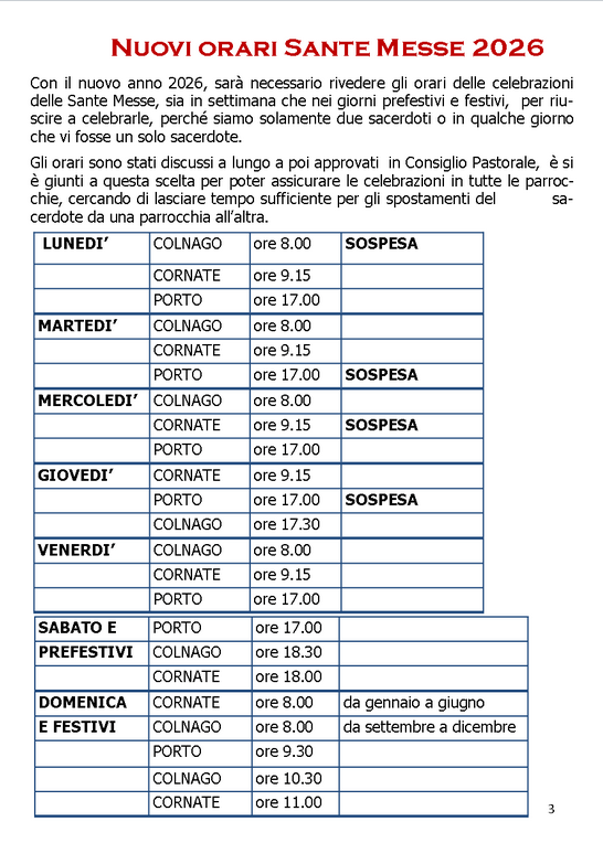 giugno - luglio - agosto, la Santa Messa nei giorni feriali sarà alle ore 18.00, la Santa Messa prefestiva del sabato alle ore 20.30
