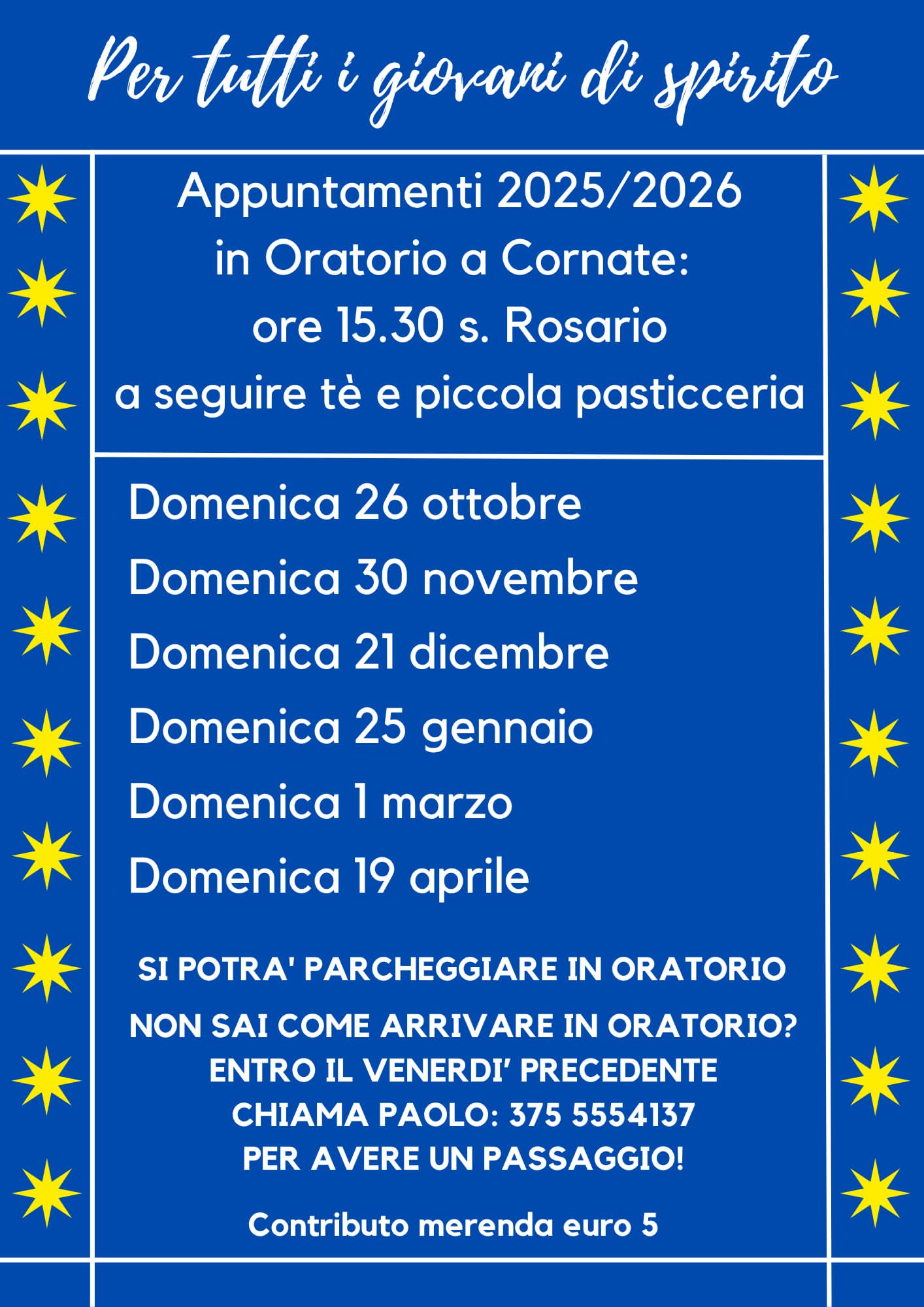 APPUNTAMENTI 2025/2026 IN ORATORIO A CORNATE